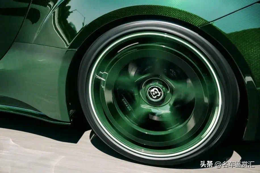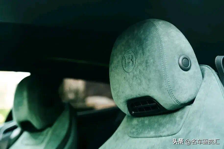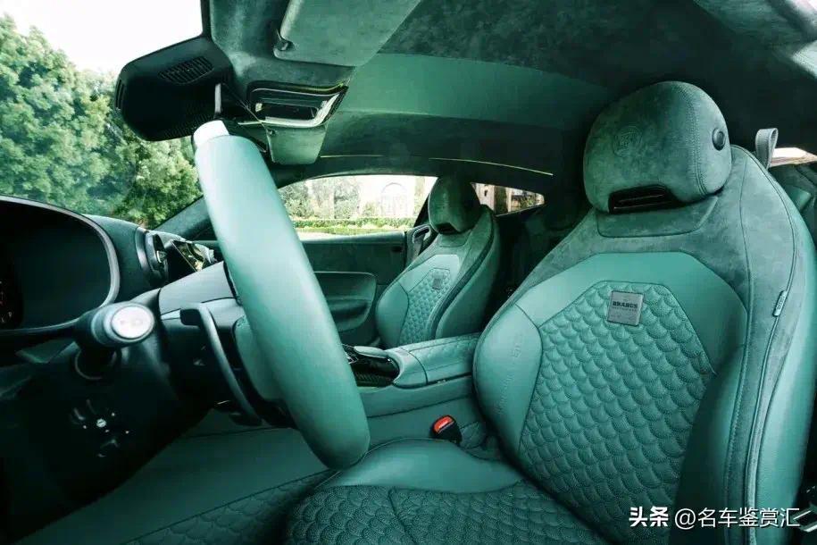这台巴博斯的内饰和它的外观一样狂野。座舱内几乎每一寸地方都被绿色皮革和绿色Alcantara材质覆盖,包括座椅、传动通道、门板、车顶内衬和脚垫。少数没有用皮革或Alcantara包裹的部件,则采用了绿色碳纤维饰面。